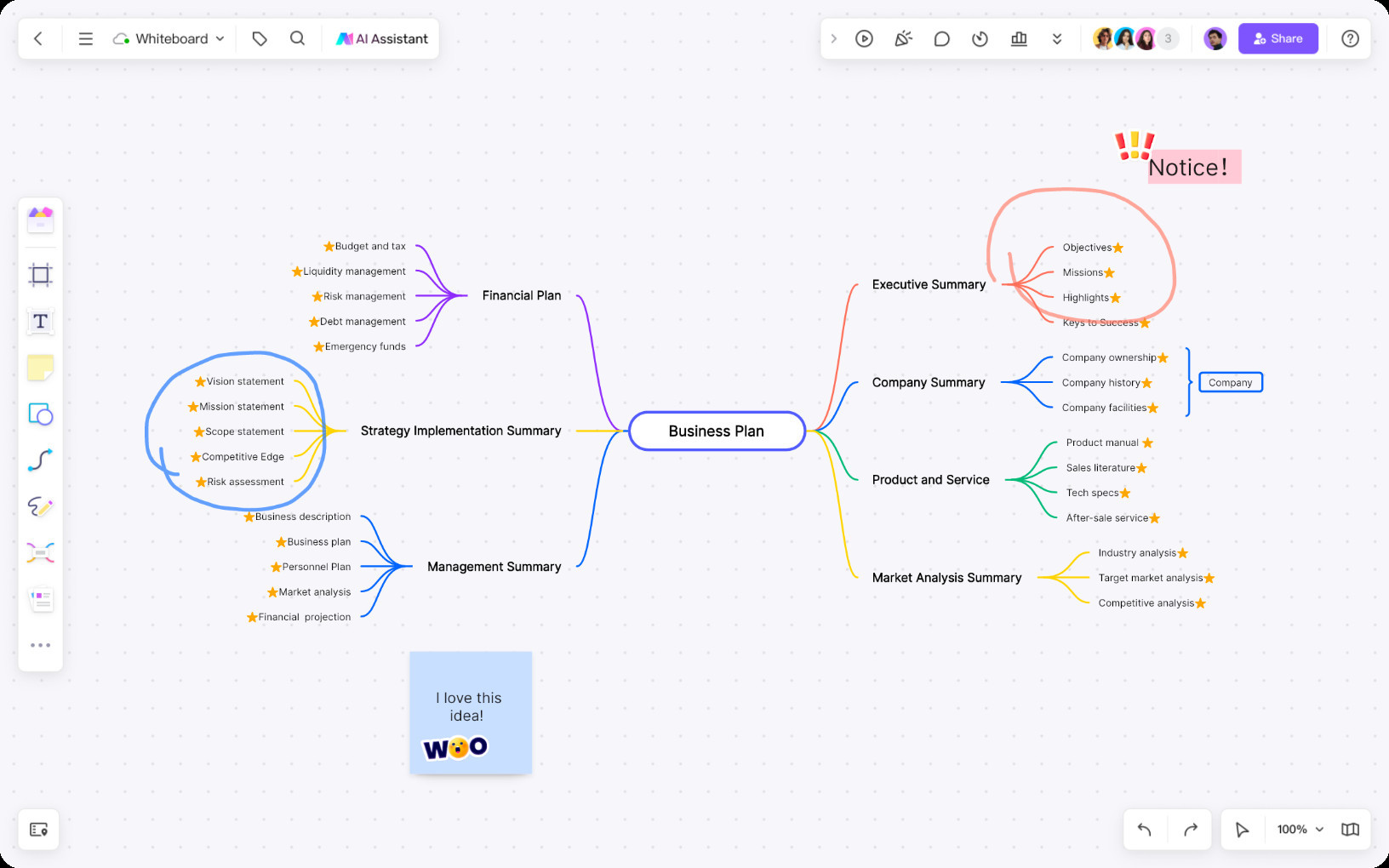 Boardmix je přehledná elektronická tabule (whiteboard) sloužící pro tvorbu myšlenkových map, diagramů, plánování, poznámek, brainstorming apod. Program při tvorbě využívá také technologii umělé inteligence (AI) a nabízí řadu zajímavých funkcí, jako jsou například přidávání poznámek, hlasování, interakce pomocí nálepek a emotikonů nebo řízení schůzek pomocí režimů prezentace a časovače.