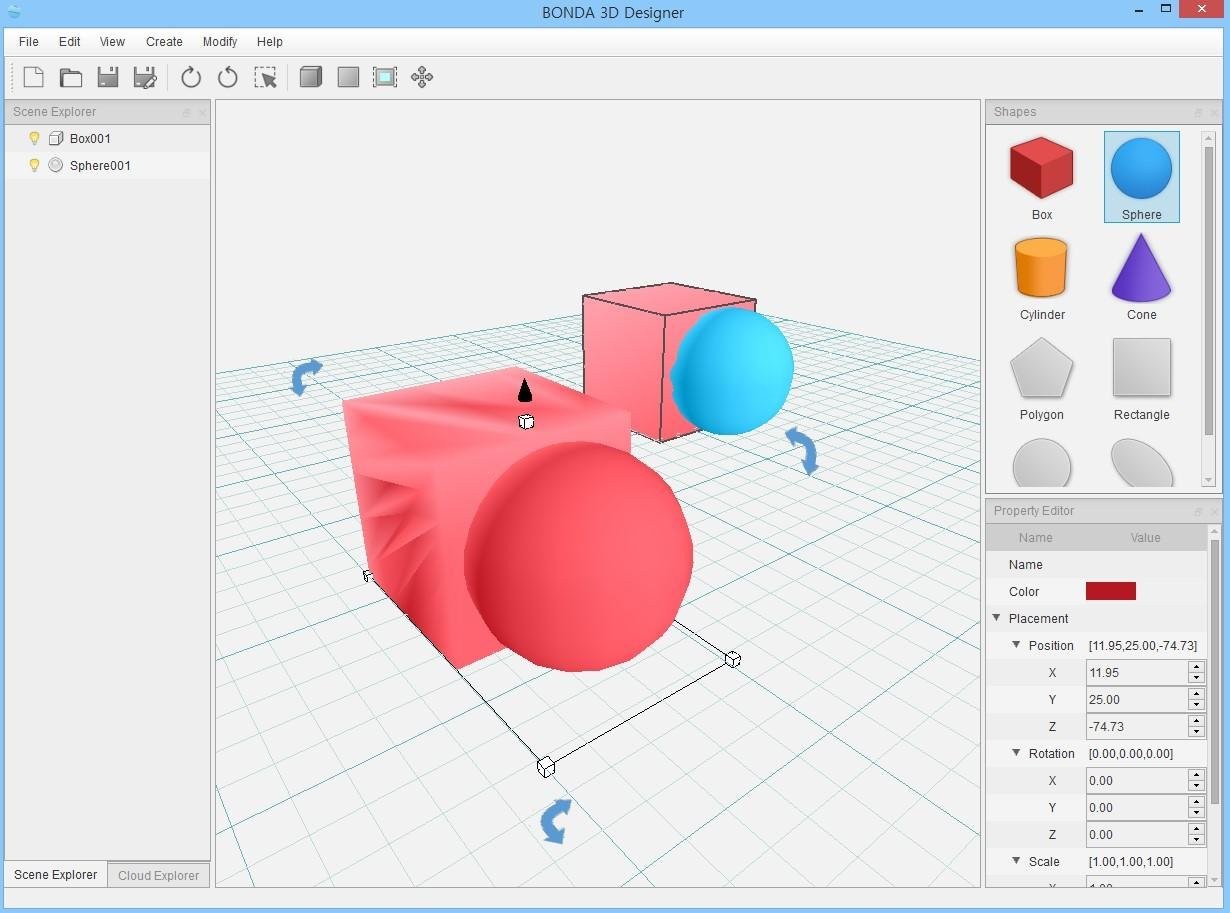 BONDA3D Designer je grafický editor pro rychlou a snadnou tvorbu trojrozměrných objektů ve formátech STL, OBJ, PLY, AMF, COLLADA a dalších.