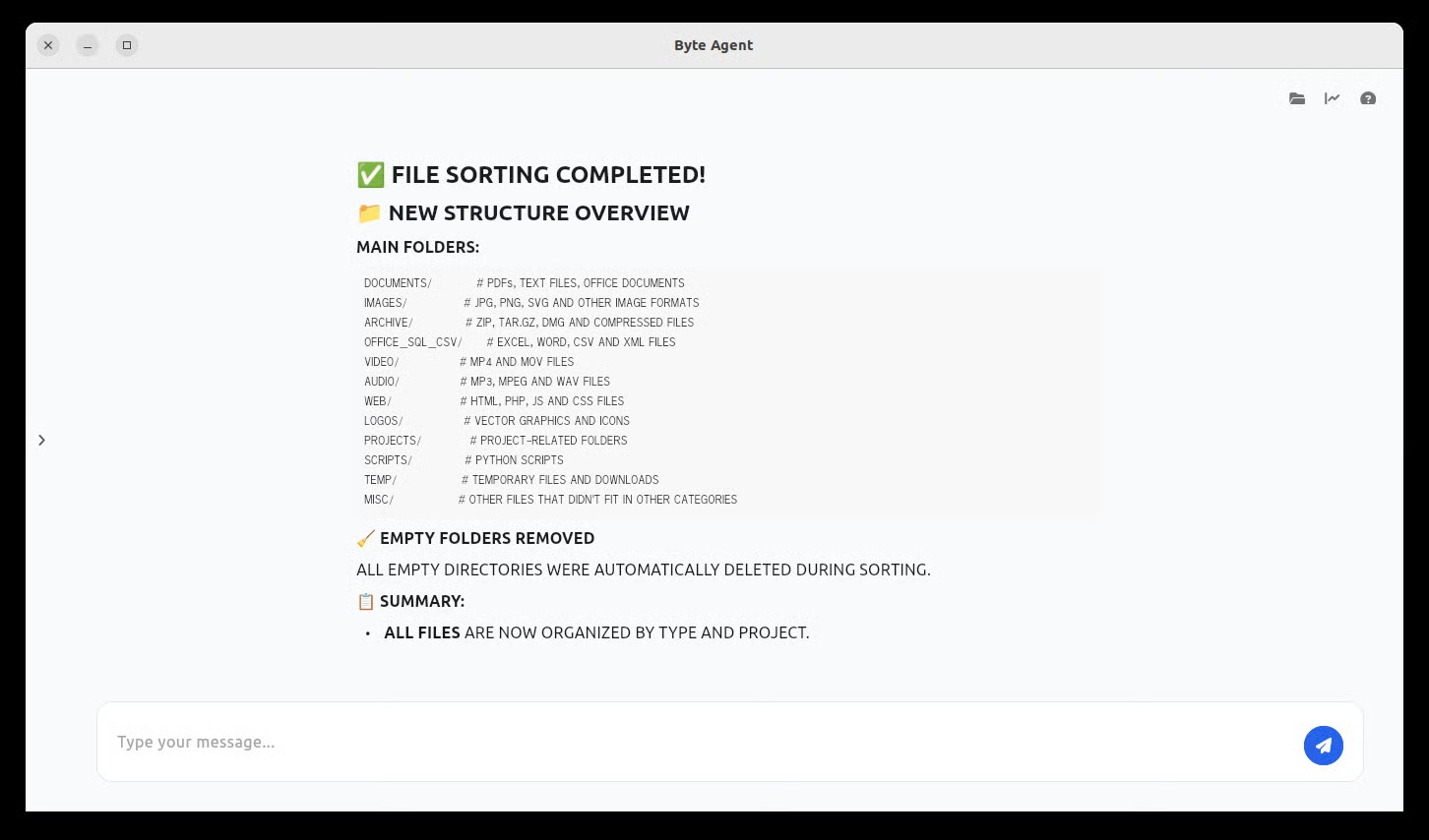 Byte Agent je pokročilý desktopový AI asistent, který dokáže analyzovat systém v reálném čase, může spouštět skripty a automatické úkony a poskytuje odpovědí ve srozumitelné lidské řeči.