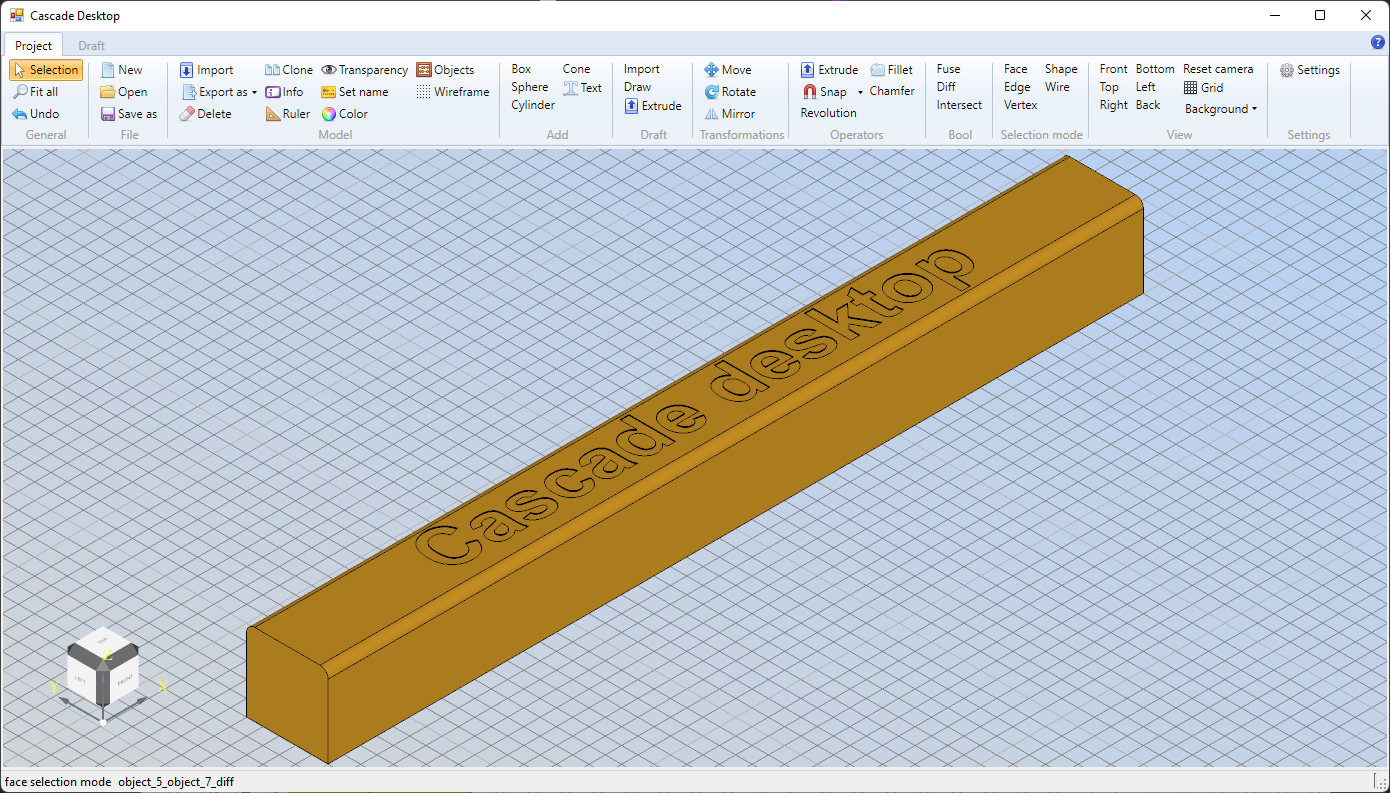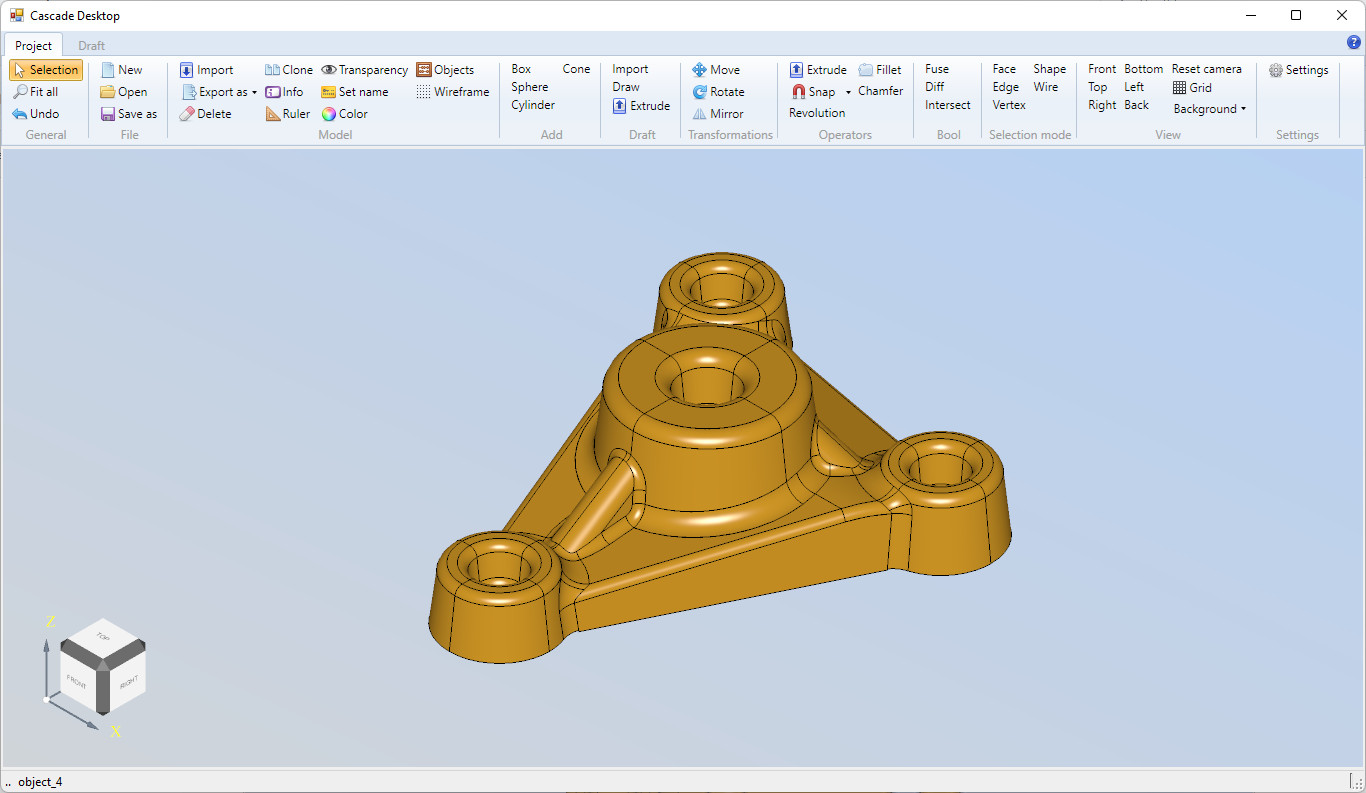 Cascade Desktop je nástroj založený na knihovně OpenCASCADE sloužící k prohlížení a základní úpravám 3D modelům.