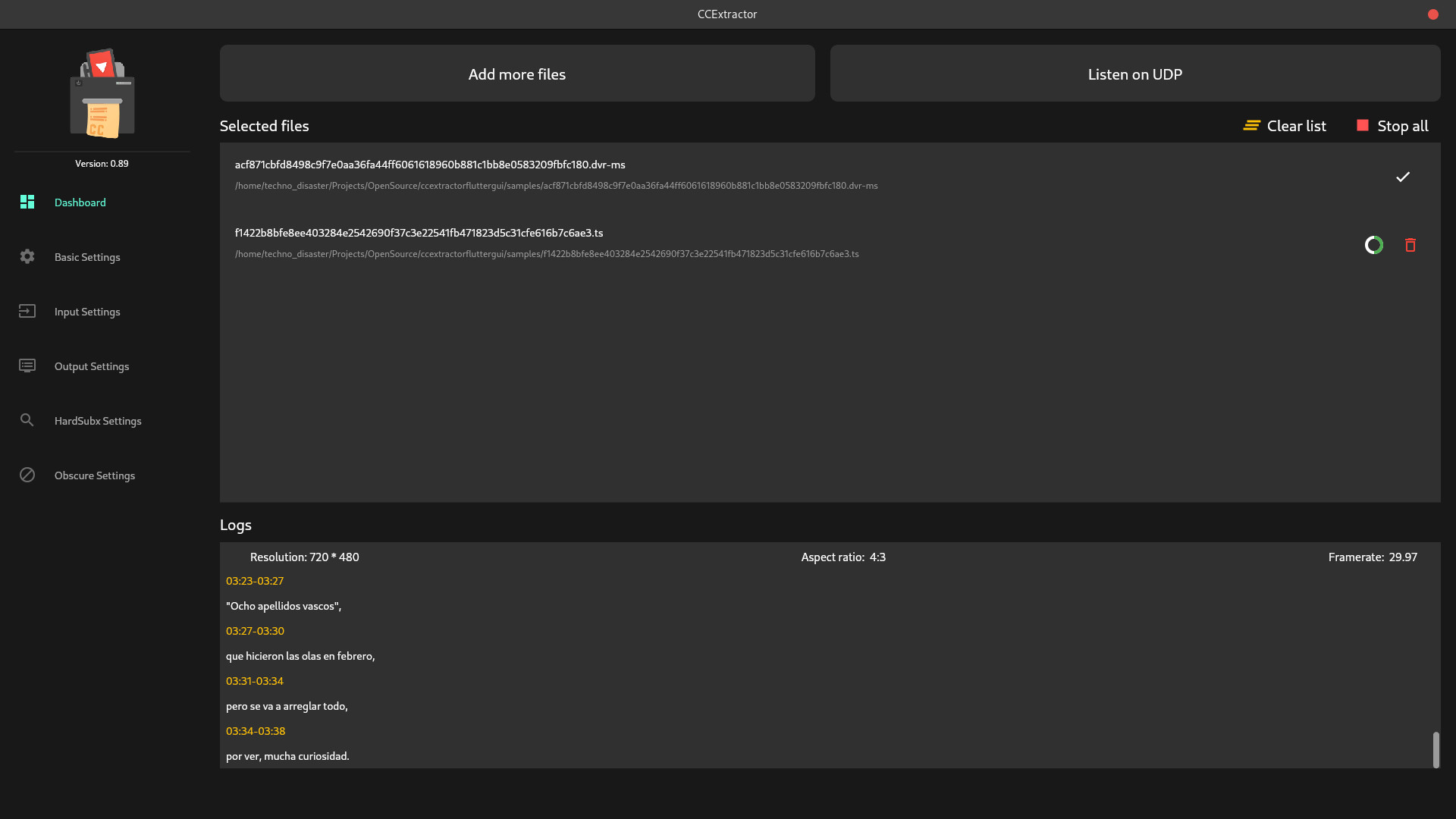 CCExtractor flutter GUI je přehledné grafické uživatelské rozhraní pro nástroj CCExtractor, který je určený pro extrakci a uložení filmových titulků z video souborů. Titulky lze extrahovat i z více souborů současně a nechybí přehledné zobrazení průběhu extrakce.