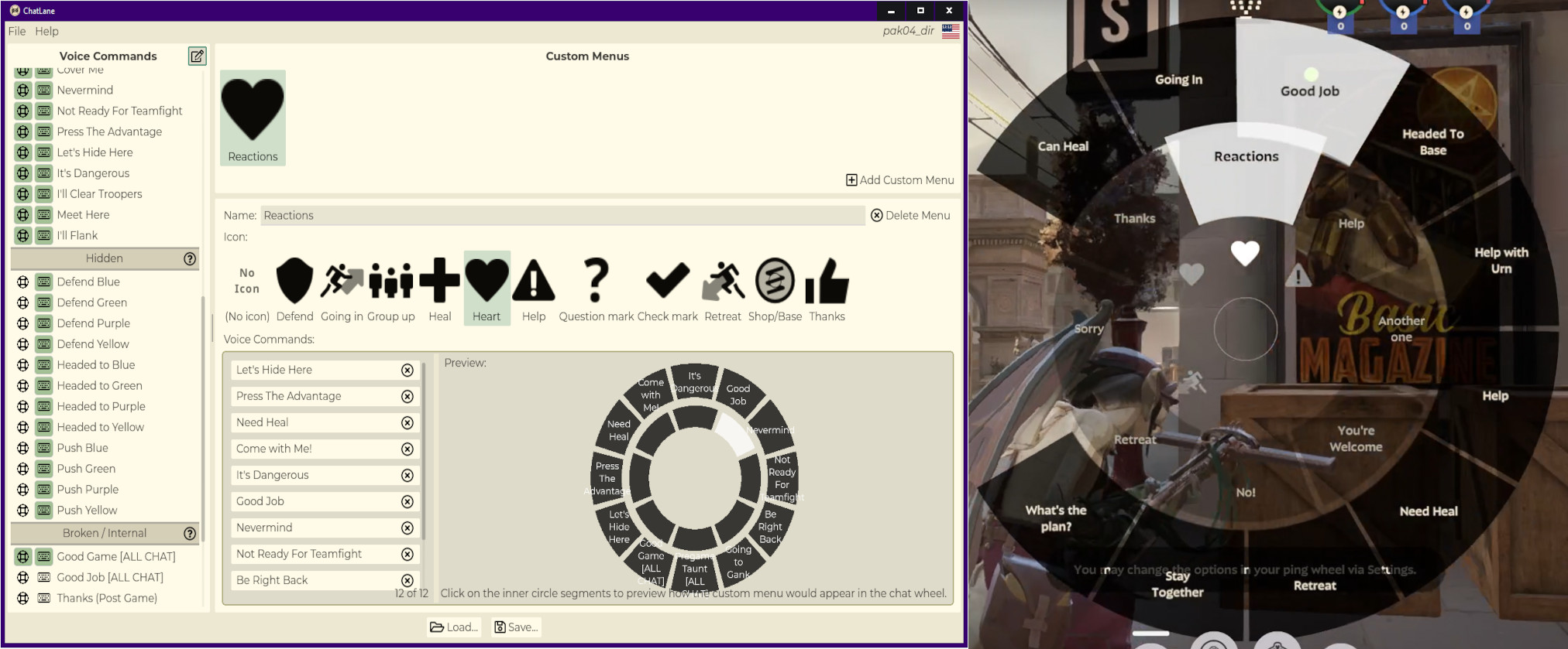 ChatLane je nástroj, který dokáže vytvořit vlastní chat wheel", respektive lastního kruhového menu s hlasovými příkazy a emotion ikonami pro použití v herních chatech a při ovládání.