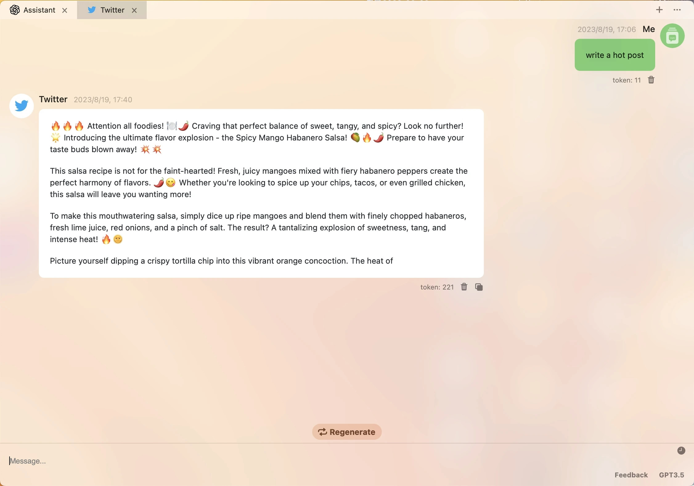 ChatTab for Mac je nástroj pro komunikaci s chatbotem ChatGPT v počítačích s macOS. Program se aktivuje velmi snadno pomocí jediné klávesové zkratky. Uživatel se při komunikaci může dotazovat se na různé informace, nechat překládat text a mnoho dalšího. V programu nechybí ani iCloud integrace pro synchronizaci dat mezi zařízení.