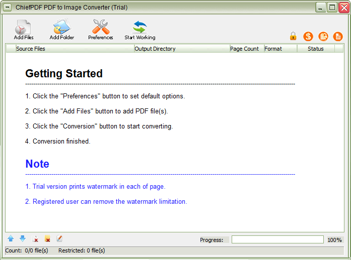 ChiefPDF PDF to Image Converter je nástroj pro hromadnou konverzi PDF souborů do grafických souborů typu TIF/TIFF, JPG/JPEG, BMP, GIF, PNG, PCX, EMF a WMF. Předností programu je především snadné ovládání a možnost nastavení kvality i rozlišení výstupních obrázků.