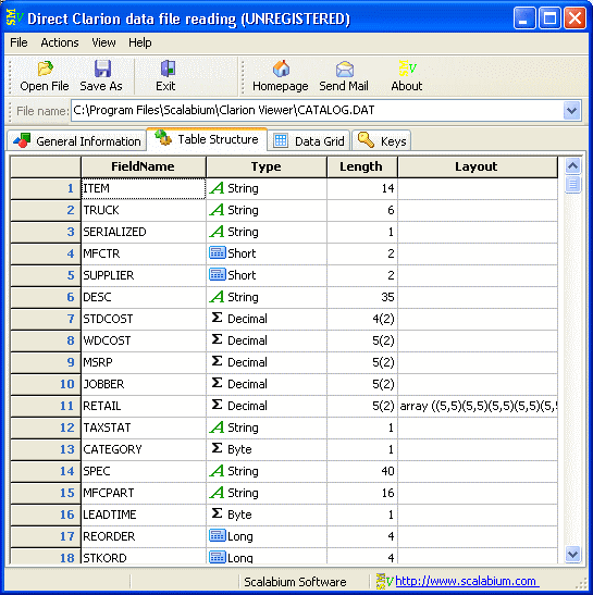 Clarion viewer je jednoduchý prohlížeč a editor souborů typu DAT. Obsah DAT souborů je možné modifikovat a exportovat do souborů typu CSV, Text, HTML, XML, MS Excel, MS Access, SPSS, SQL a dalších. Program nevyžaduje, ani nevyužívá žádné externí knihovny a není nutné jej instalovat.