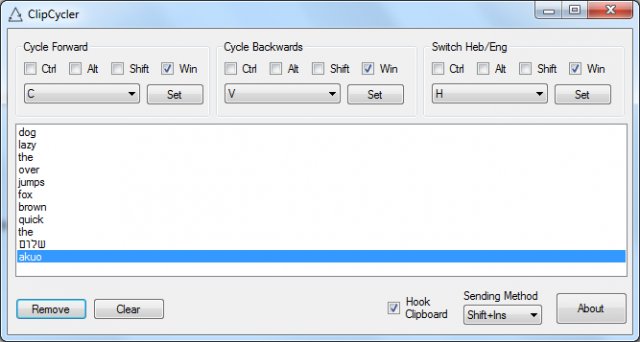 ClipCycler je užitečná pomůcka, která rozšiřuje možnosti systémové schránky (clipboardu) o možnost kopírování více položek. Vybrané položky z historie lze pak velmi snadno vkládat, přičemž je možné definovat vlastní klávesové zkratky pro kopírování i vkládání. Hlavní předností programu jsou nízké systémové nároky a program se navíc nemusí instalovat, pouze se spustí do oblasti system tray v pravém spodním rohu obrazovky.