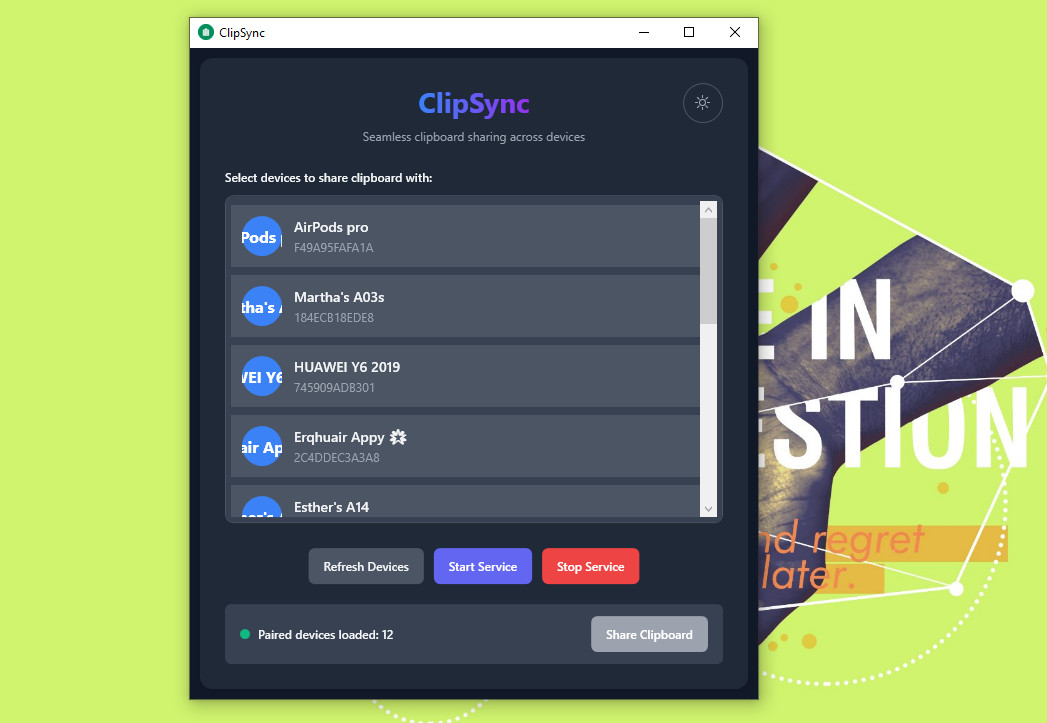 ClipSync je aplikace sloužící pro sdílení obsahu systémové schránky (clipboardu) mezi Windows a Android zařízením pomocí Bluetooth připojení. Uživatel tedy může zkopírovat text například ve Windows a snadno je vložit v mobilním telefonu či tabletu s Androidem.
