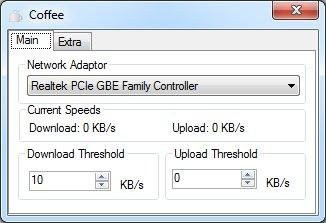 Coffee je nástroj, který dokáže zabránit uspání počítač během stahování souborů, při přenosu souborů přes síť nebo při instalaci programů pomocí webových instalátorů. V programu lze nastavit mezní hodnoty pro download i upload souborů, při jejichž překročení nedochází k automatickému uspání PC či notebooku.