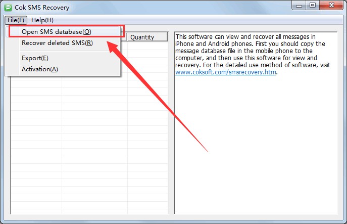 Cok SMS Recovery je nástroj pro obnovu nechtěně smazaných SMS zpráv z mobilních telefonů s operačním systémem Android nebo iOS. U telefonů s Androidem je jen potřeba načíst soubor "mmssms.db", který lze nalézt přímo v mobilním telefonu i telefonů s iOS se pak jedná o soubor "sms.db".