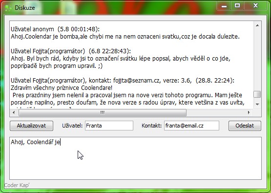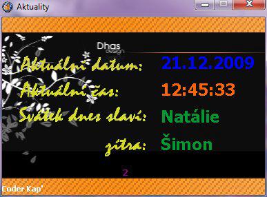 Coolendář je nástroj, který vás po spuštění počítače informuje o aktuálním čase, datu a jménu osoby, která v daném a příštím dni slaví svátek nejen uvítacím oknem, ale i jeho "přečtením". Je plně nastavitelný a tak si ho můžete upravit podle svého gusta. Jeho barevné schéma je vhodné pro Windows 7.