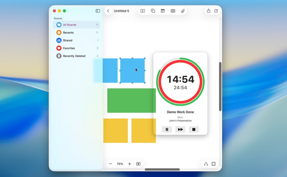 Counti for Mac je přehledný organizér pro plánování různých meetingů a schůzek nebo pracovních bloků. Zadané události lze rozložit na segmenty a zobrazovat je pomocí plovoucího časovače vždy navrchu. Součástí programu je také AI generátor šablon schůzek, který dokáže vytvořit časovou agendu schůzky ne základě popisu.