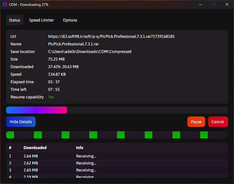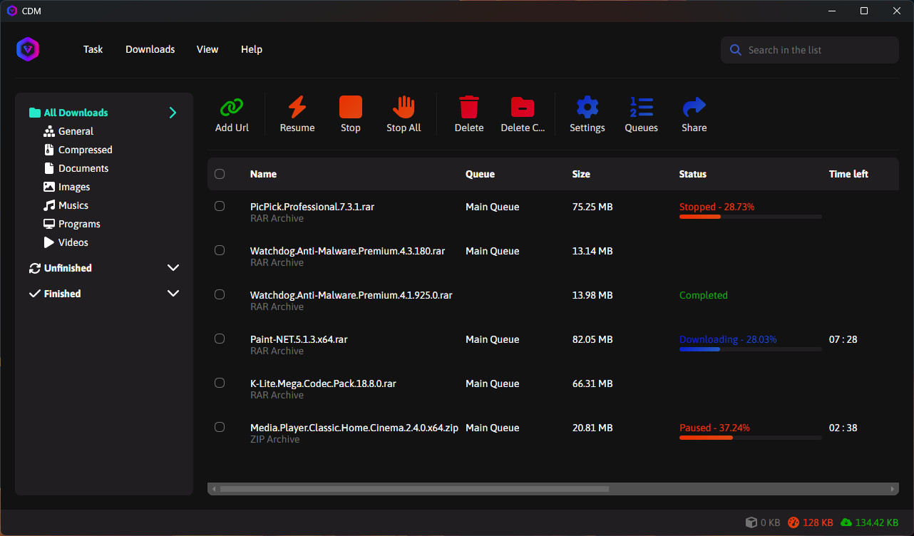 Cross Platform Download Manager (CDM) je přehledný multiplatformní správce stahování, který umožňuje i integraci přímo do webových prohlížečů pro pohodlnější stahování souborů. Samozřejmostí je také podpora vícevláknového stahování, což umožňuje rychlejší stažení souborů rozdělením do více segmentů. Samozřejmostí je možnost správy fronty stahování a určení vlastních priorit.
