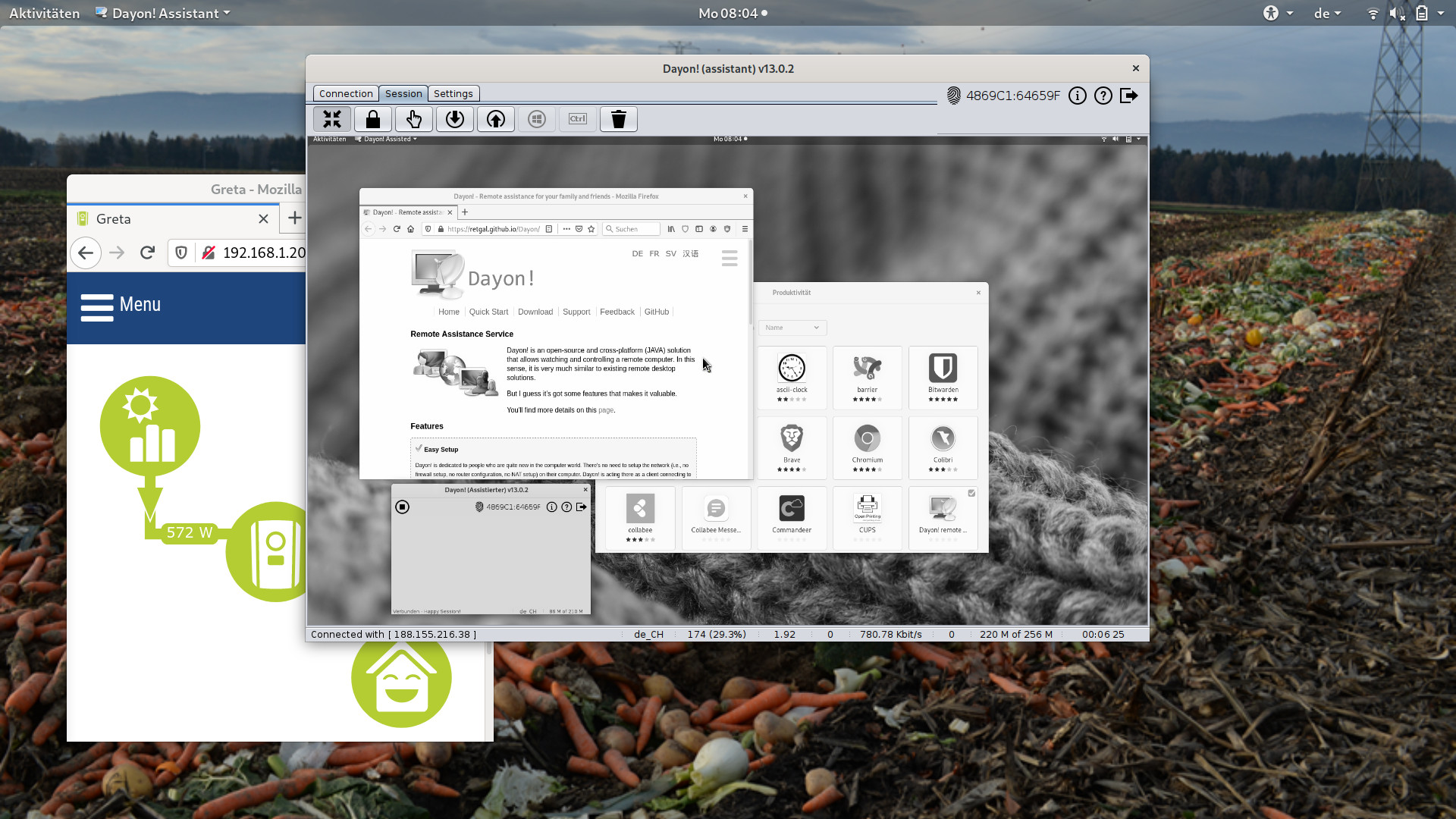 Dayon! je užitečný pomocník pro snadnou vzdálenou správu počítačů. Veškerá komunikace je zabezpečena pomocí s TLS (Transport Layer Security) a program má snadné ovládání i nastavení. Připojení ke vzdálenému počítači vyžaduje zadání platného tokenu respektive klíče a přijmutí ze strany klienta.