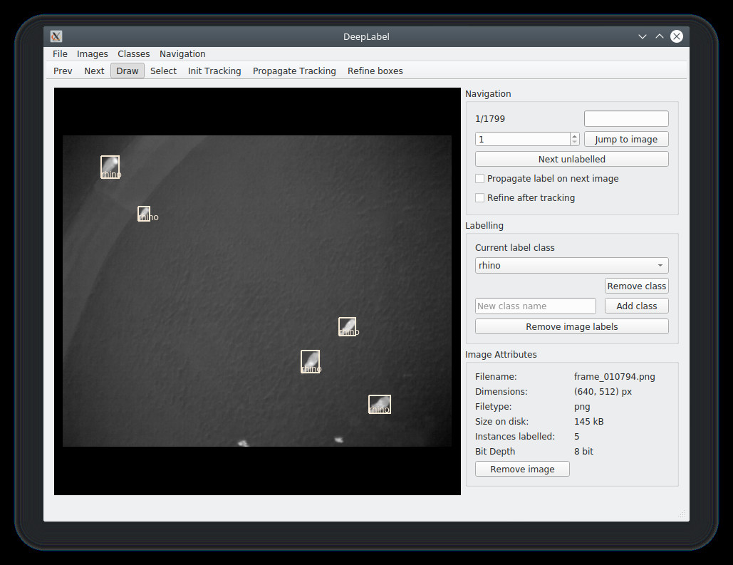 DeepLabel já nástroj sloužící pro anotaci obrázků pomocí označených ohraničovacích rámečků. Program najde využití v případě použití pro značení základních pravdivých dat (ground truth data) pro aplikace strojového učení určené k detekci objektů. Podporováno je spoutění inferencí pomocí modelů detekce objektů, jako je Faster-RCNN nebo YOLOv4.