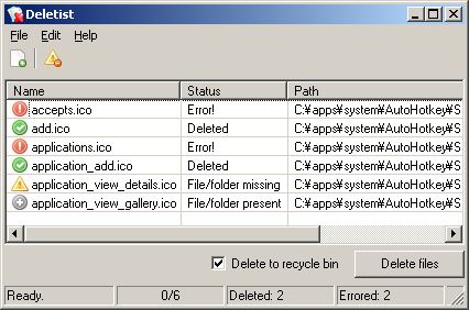 Deletist je jednoduchá pomůcka pro snadné hromadné mazání vybraných složek a souborů. Zvolené soubory lze odstranit do koše nebo je smazat úplně. Program se nemusí instalovat.