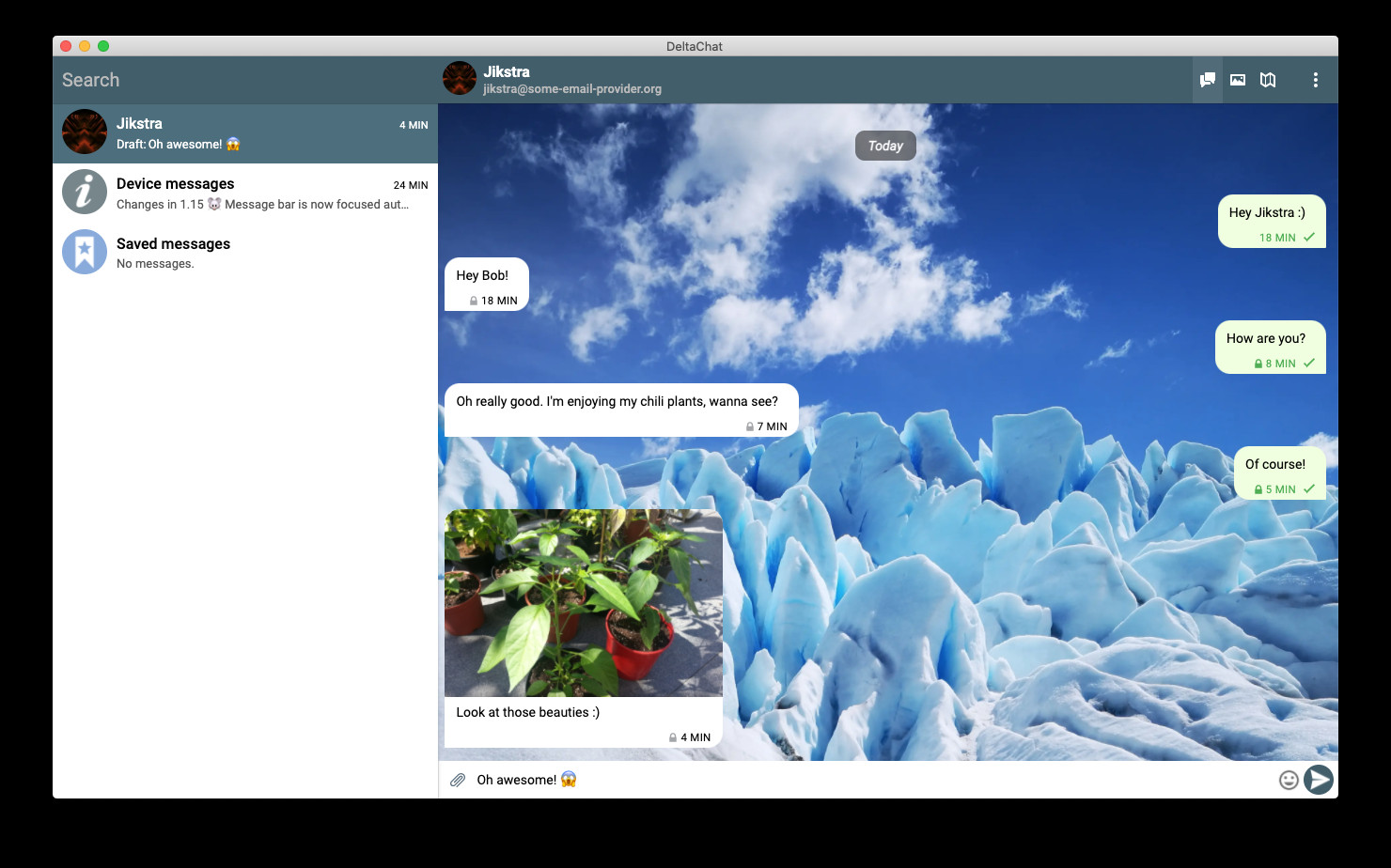 Delta Chat Desktop je nástroj sloužící pro textovou IM komunikaci (instant messaging) mezi uživateli, který je založen na e-mailu. Komunikace je možná pomocí e-mailu, ale s uživatelským rozhraním, které připomíná aplikace pro chat. Bezpečnost komunikace je zajištěna pomocí end-to-end šifrování.