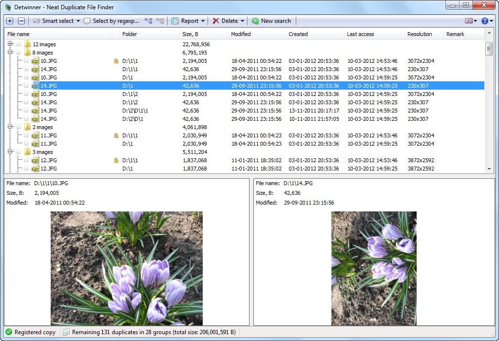 Detwinner je aplikace pro pokročilé vyhledávaní a odstranění duplicitních souborů. Vyhledávat lze dokumenty, videa, audio soubory, digitální fotografie apod. Před samotným odstranění lze soubory samozřejmě zobrazit a porovnat.