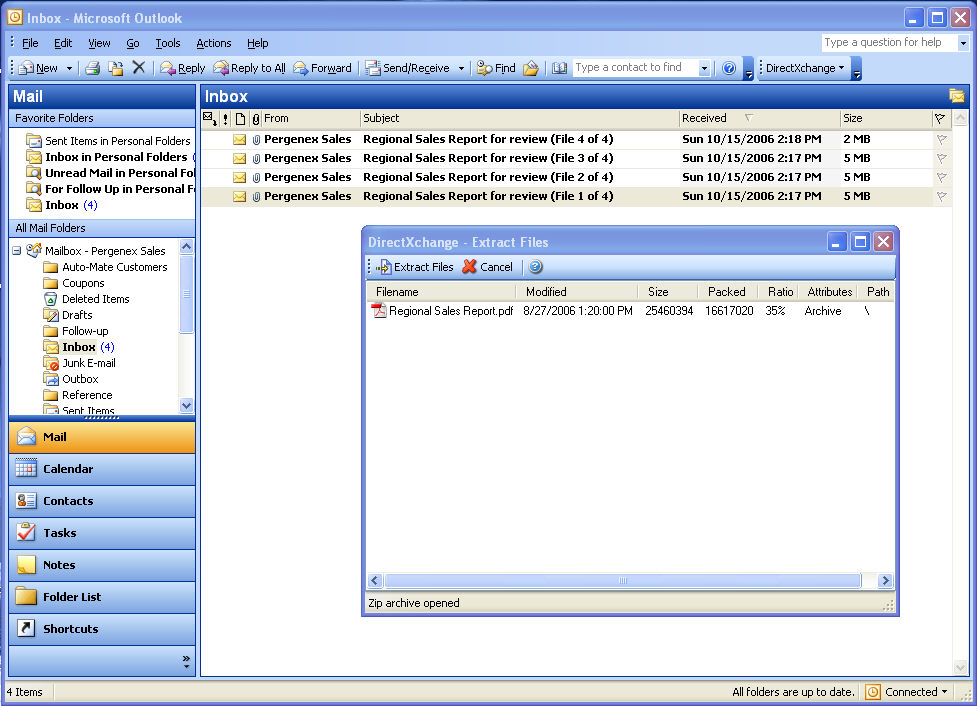 DirectXchange je doplněk pro MS Outlook, který slouží k odesílání velkých souborů elektronickou poštou a pro jejich automatické šifrování, rozdělení a případně kompresi. K šifrování je využíván algoritmus AES a doplněk je určen pro Microsoft Outlook 2000, 2002 a 2003.