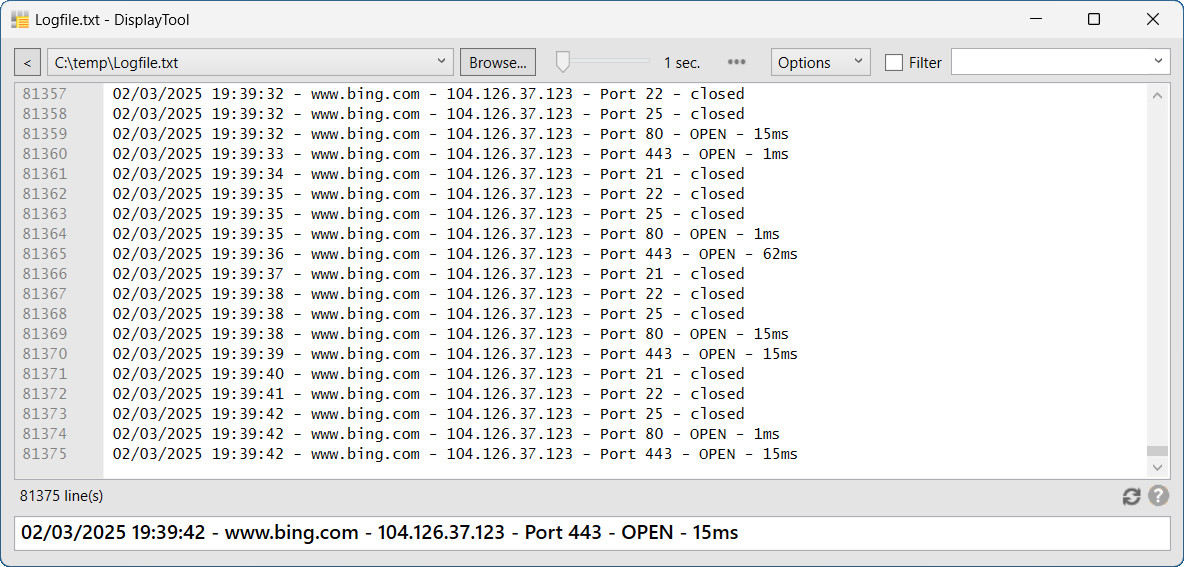 DisplayTool je malý a nenáročný nástroj určený zejména pro administrátory a vývojáře, který umožňuje prohlížení textových souborů nebo logů v reálném čase, přičemž veškeré změny se zobrazují okamžitě. Dokonce lze prohlížet i vzdálené síťové soubory. Pokud je vzdálený počítač restartován, nástroj čeká na připojení a soubor okamžitě znovu zobrazí.