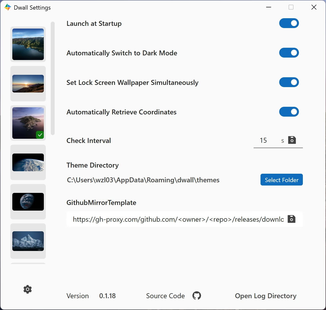DWALL je nástroj, který dokáže dynamicky měnit tapety na pozadí pracovní plochy ve Windows na základě aktuální polohy Slunce, čímž je vytvářen plynulý přechod mezi světlými a tmavými motivy během dne. Nastavit lze i různé tapety pro jednotlivé připojení monitory. Program je inspirován obdobnou funkcí ze systému macOS.