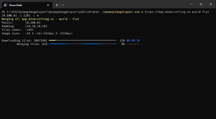 Dynmap Image Export je nástroj ovládaný pomocí příkazového řádku (CLI), který slouží ke stahování dlaždic ze serveru Dynmap HTTP a jejich sloučení do jednoho obrázku.