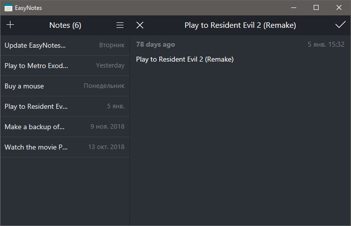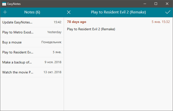 EasyNotes je nástroj určený pro evidenci, přehlednou správu a synchronizaci poznámek mezi systémy Windows, Android a iOS. Program umožňuje nastavit serverovou část na straně Windows aplikace nebo webovém serveru. Synchronizaci poznámek a jejich případných změn lze pak provádět lokálně nebo s webovým serverem v závislosti na nastavení serverové části.