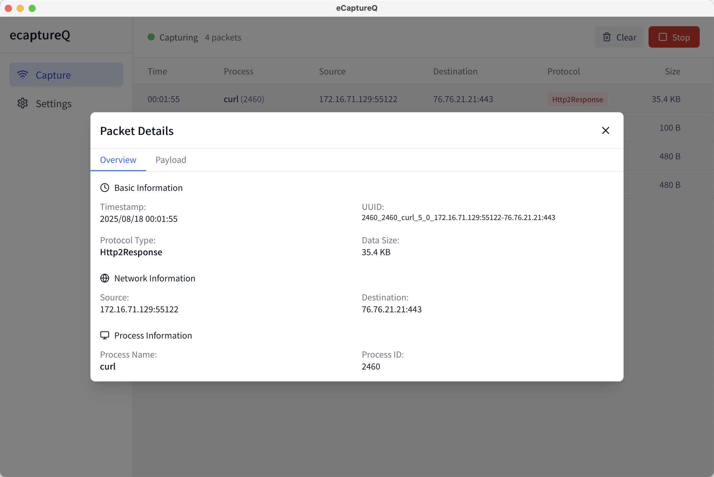 eCaptureQ dekóduje TLS traffic (komunikaci) přímo z jádra systému. Síťové požadavky jsou pak zobrazeny okamžitě i s adaptivním layoutem pro desktop/tablet a mobil.