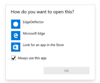 EdgeDeflector je nástroj, který dokáže "přinutit" operační systém Windows, aby respektoval nastavení výchozího webového prohlížeče při otevírání odkazů z aplikací vyvinutých společností Microsoft, kde je standardně preferován prohlížeč Microsoft Edge.