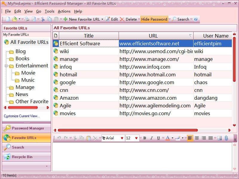 Efficient Password Manager Pro je bezpečný, efektivní a přehledný správce přihlašovacích jmen a hesel pro různé webové stránky či služby, e-mailové účty, FTP servery apod.