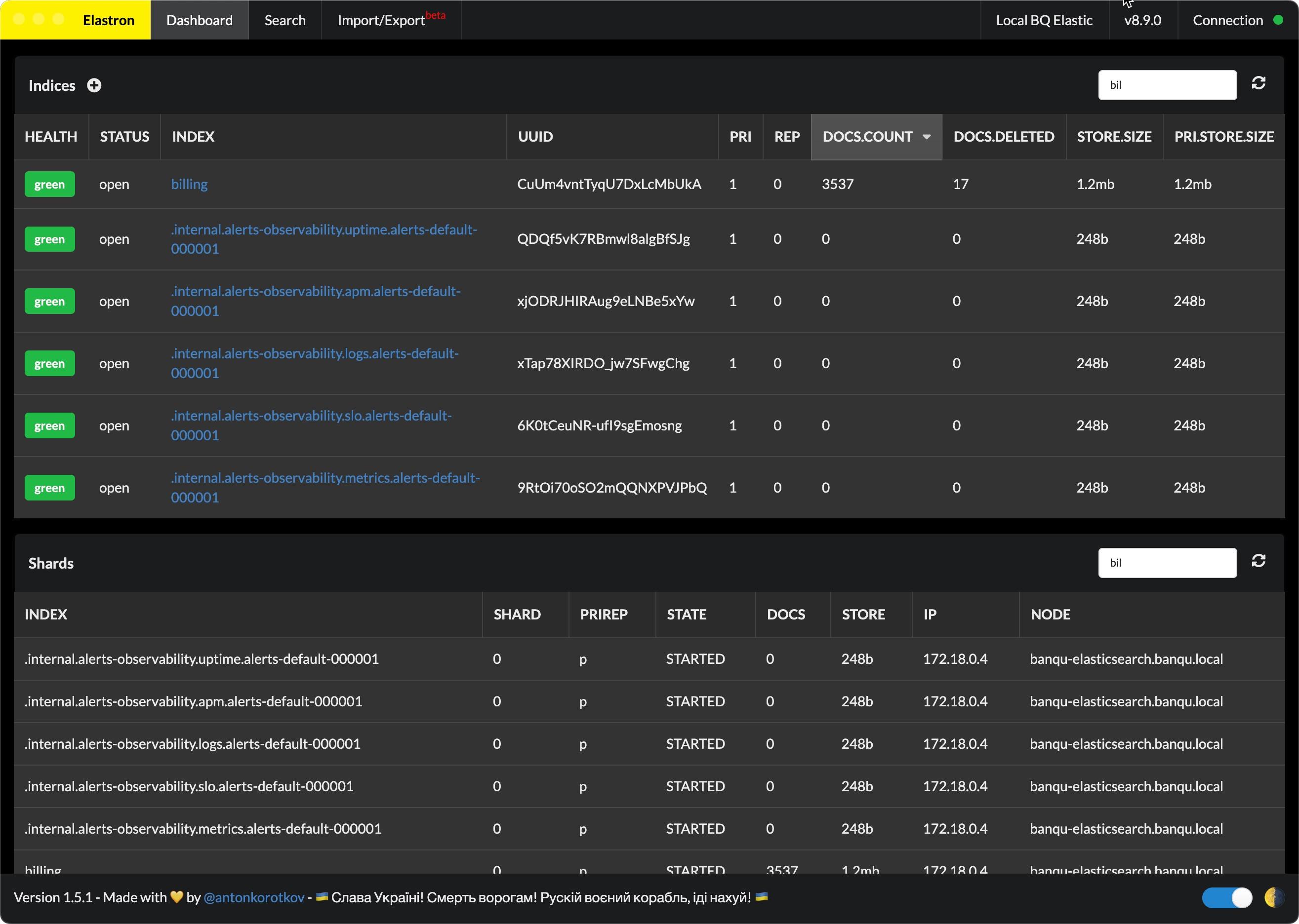 Elastron je desktopový klient (GUI) pro snadné připojení k serveru Elasticsearch a pro správu dat a případnou konfiguraci. Klient může být použít pro přehledné zobrazení a editaci mapování, nastavení, aliasů i indexů apod. Snadno lze provádět vyhledávací operace na vašich indexech Elasticsearch. Výsledky vyhledávání je pak možné zobrazit v různých zobrazovacích režimech.