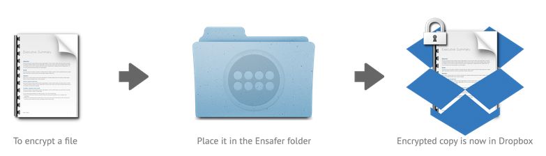 Ensafer je užitečný nástroj pro pohodlné automatické šifrování dat před jejich jejich uložením na cloudové úložiště Dropbox. Uživatel zvolené soubory umístí do speciální složky, kterou program vytvoří a ten se již sám postará o jejich šifrování a upload (synchronizaci) na Dropbox.
