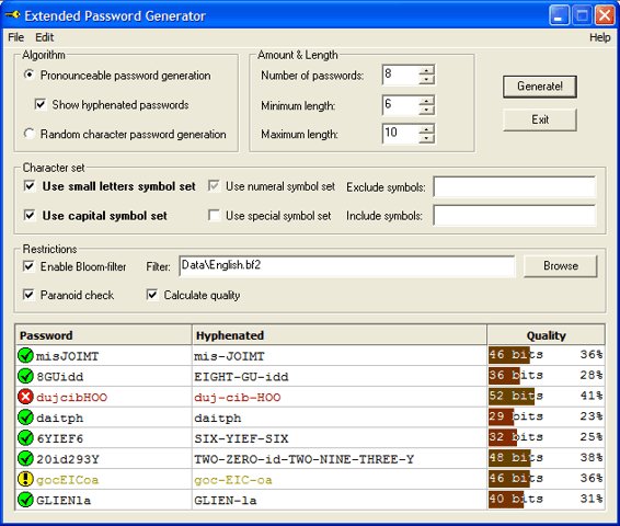 Extended Password Generator - EPG je přehledný nástroj pro generování silných hesel. Program generuje hesla na základě zakládních nastavení uživatele a určuje i stupeň jejich bezpečnosti v procentech.