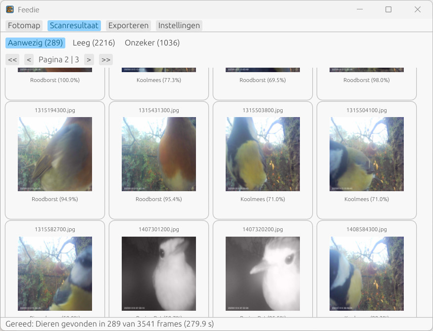 Feedie je aplikace určená pro správu snímků z kamer ptačích krmítek, respektive fotografií ptactva. Program automaticky provádí klasifikaci druhů, třídění snímků do složek a export do souboru CSV kompatibilního s Observation.org. Zpracování snímků je plně lokální, ale aplikace umožňuje nahrávání ručních popisků a automaticky kontroluje aktualizace.