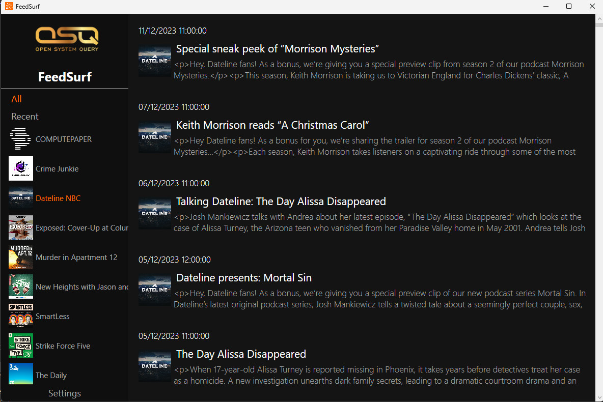 FeedSurf je přehledný a nenáročný nástroj pro odběr a čtení oblíbených RSS kanálů. Uživatel může snadno přidávat, spravovat a číst RSS kanály z různých zdrojů na jednom místě. V programu lze také RSS kanály přehledně organizovat a třídit dle vlastních preferencí nebo kategorií.