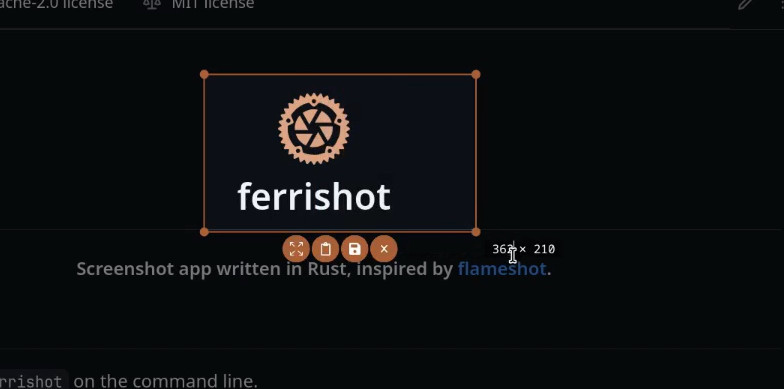 ferrishot je jednoduchý pomocník vytvořený v Rustu, který sloužící pro snadnou tvorbu snímků obrazovky. Program byl inspirován nástrojem Flameshop a nabízí uživateli nastavitelné řešení pro pořizování snímků obrazovky s možností využití vlastních skriptů. Nástroj dokáže automaticky indikovat velikost snímané oblasti a podporuje ovládání pomocí klávesových zkratek.