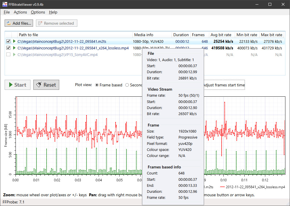FFBitrateViewer je nástroj sloužící pro přehlednou vizualizaci a také možnou analýzu datového toku videí, k čemuž program využívá nástroj "ffprobe.exe".