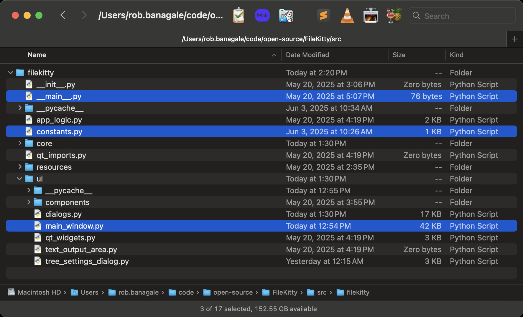 FileKitty for Mac umožňuje například výběr souborů, zobrazení kombinovaného obsahu, inteligentní extrakci Python kódu, detekci změn nebo kopírování obsahu do systémové schránky.