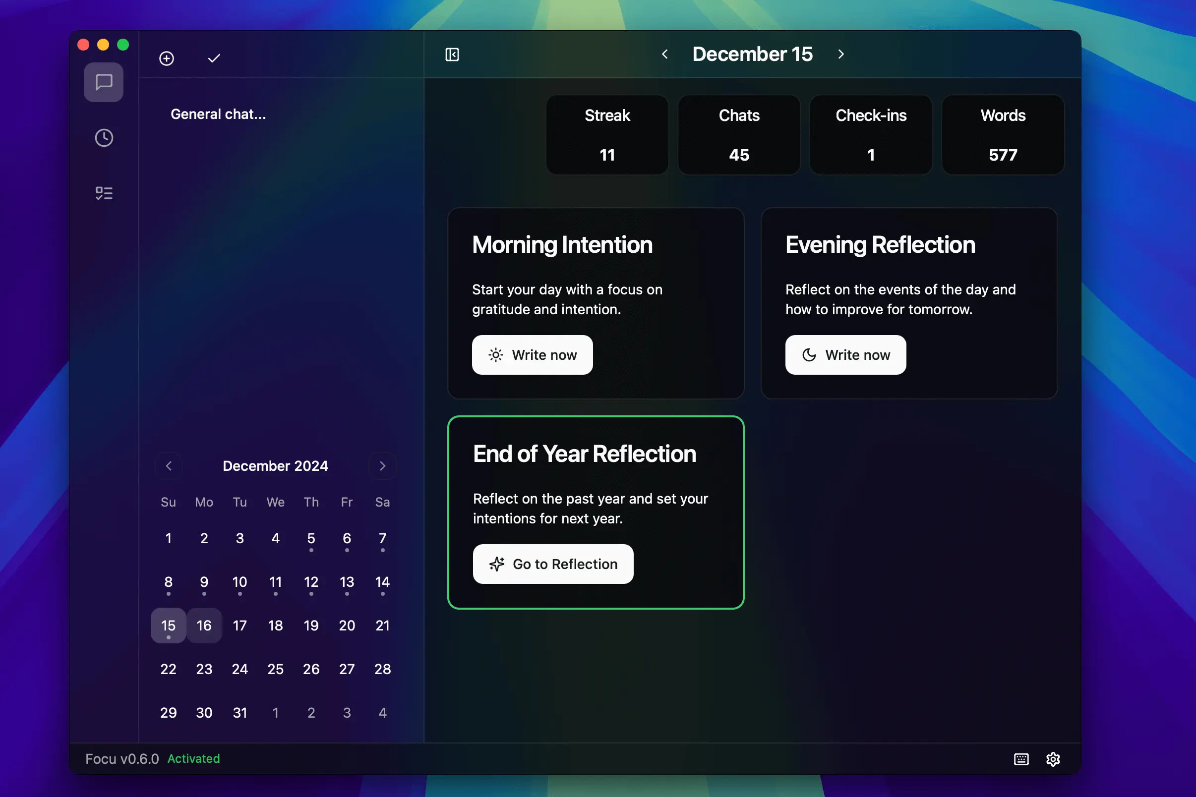Focu for Mac nabízí přehlednou správu různých úkolů, poznámek a nechybí ani plánovací kalendář a Pomodoro časovač pro organizaci pracovního času. Program tak uživateli pomáhá zlepšit soustředění a podporuje pravidelné kontroly práce a připomínky. Nástroj rovněž využívá AI pro extrakci úkolů z různých konverzací a jejich přidání do seznamu úkolů. Nechybí ani možnost ovládání pomocí klávesových zkratek.