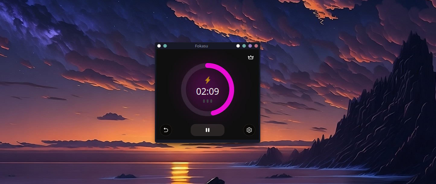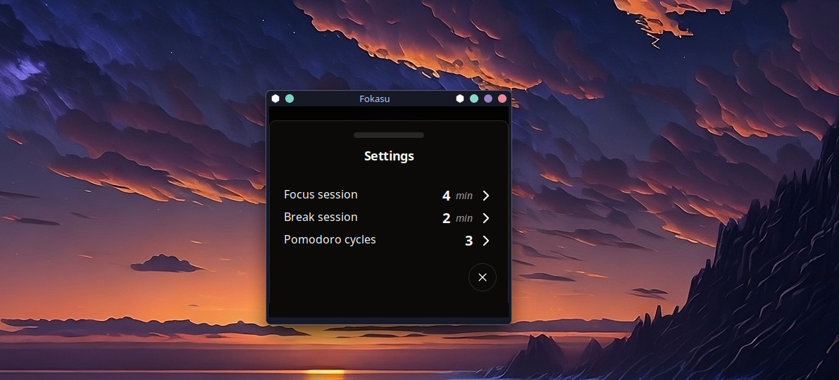 Fokasu je nenáročný Pomodoro časovač, který uživateli pravidelně připomíná pravidelné přestávky v pracovní době pomocí této techniky. Časové úseky pro aktivní práci a pro odpočinek si může uživatel sám přizpůsobit. Program disponuje přehledným uživatelským rozhraním s časovačem, který ukazuje zbývající čas v procentech. Aplikace byla vytvořena pomocí knihovny React a frameworku Tauri.