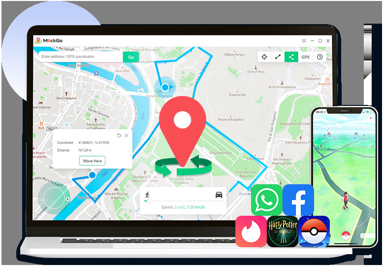 Foneazy MockGo je aplikace, která dokáže účinně zamaskovat skutečnou geografickou polohu iPhone nebo jiného zařízení se systémem iOS a GPS čipem. Skutečnou polohu lze maskovat v podstatě za jiné libovolné místo na Zemi. Program dokáže rovněž simulovat pohyb po silnicích a cestách. Pro přirozenější pohyb lze využít funkci joysticku. Pro automatizaci této činnosti lze importovat soubor GPX, který již obsahuje informace o trasách.