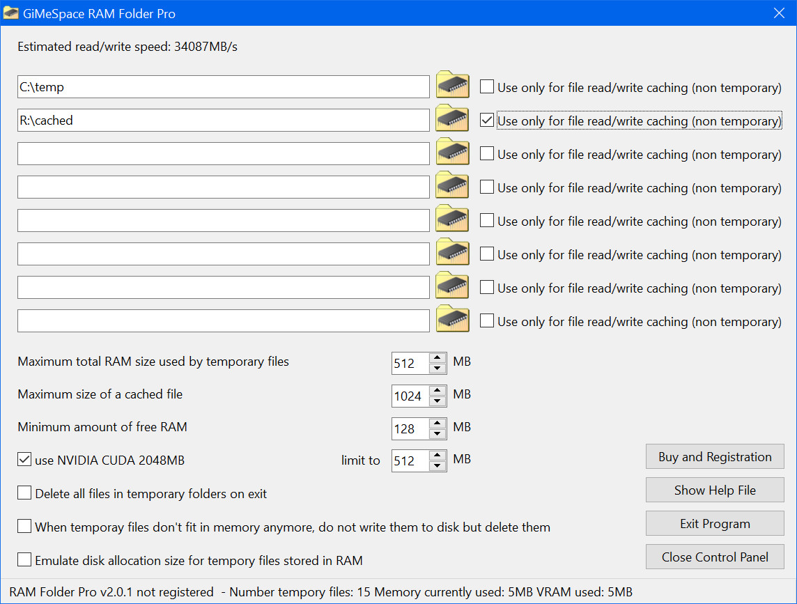GiMeSpace RAM Folder je nástroj, jehož pomocí lze zvolit složky, které pak ukládají obsažené soubory přímo do RAM paměti počítače. Uživatel má pak daleko rychlejší přístup k těmto souborům a složky lze využít i jako bezpečnou mezipaměť pro zápis souborů.