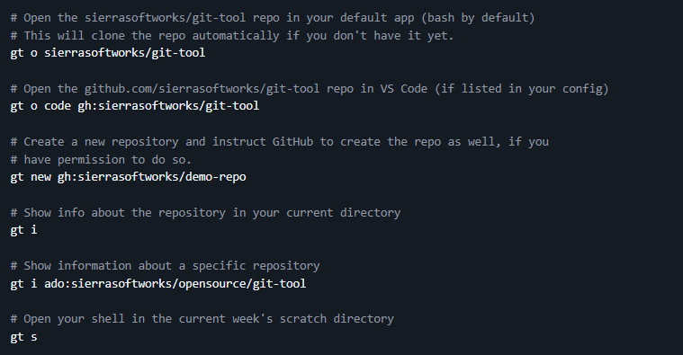 Git Tool umožňuje například rychlé otevírání repozitářů, podporu oblíbených aplikací, týdenní scratchpady, tvorbu aliasů, automatické doplňování a sekvenční vyhledávání nebo nových nových repozitářů.