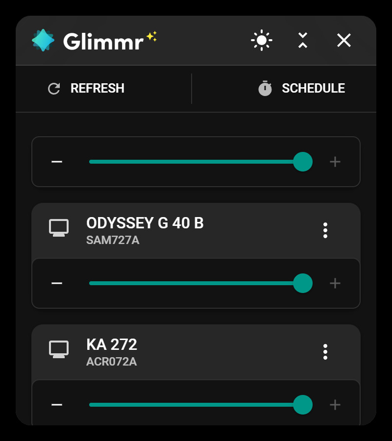 Glimmr je aplikace sloužící pro snadnou správu úrovní jasu pro jednotlivé připojené monitory. Program se ovládá přímo z oznamovací oblasti v pravém rohu pracovní plochy. Umožňuje také detailní uzpůsobení jasu jednotlivě nebo synchronizovaně pro všechny monitory. Podporována je také automatická změna úrovně jasu podle aktuální části dne.