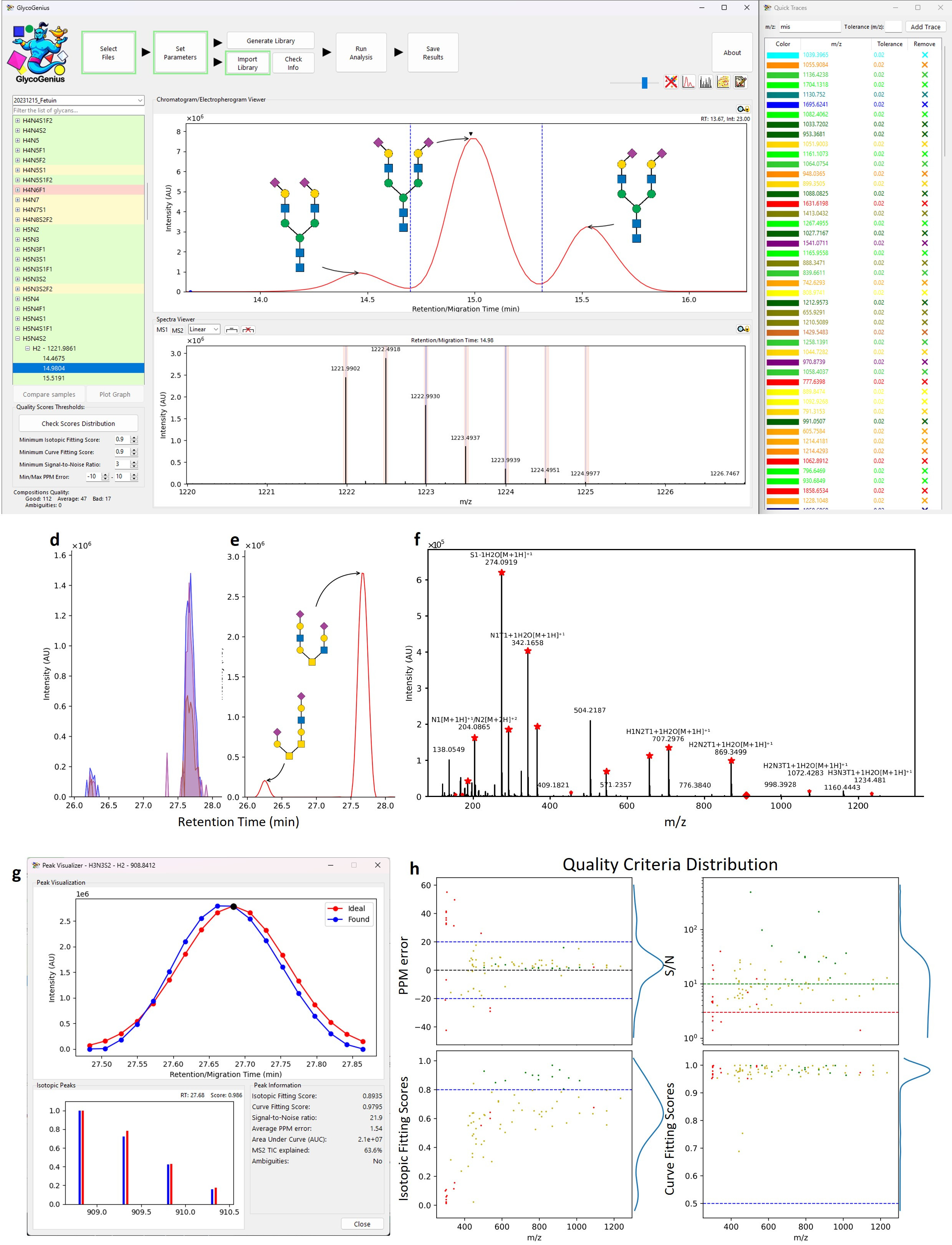 GlycoGenius je aplikace sloužící pro detailní dat z hmotnostní spektrometrie v oblasti glykonomiky. Nástroj pokytuje automatizovaný pracovní postup pro analýzu N- a O-glykomických dat z full scan/DDA spekt, glykosaminoglykanů, (GAGs), glykoproteinů a dalších glykokonjugátů. Program zobrazuje plně anotovaná spektra a metriky kvality identifikace. Generovány jsou rovněž výstupy vhodné pro publikaci, včetně přehledných grafů a tabulek.