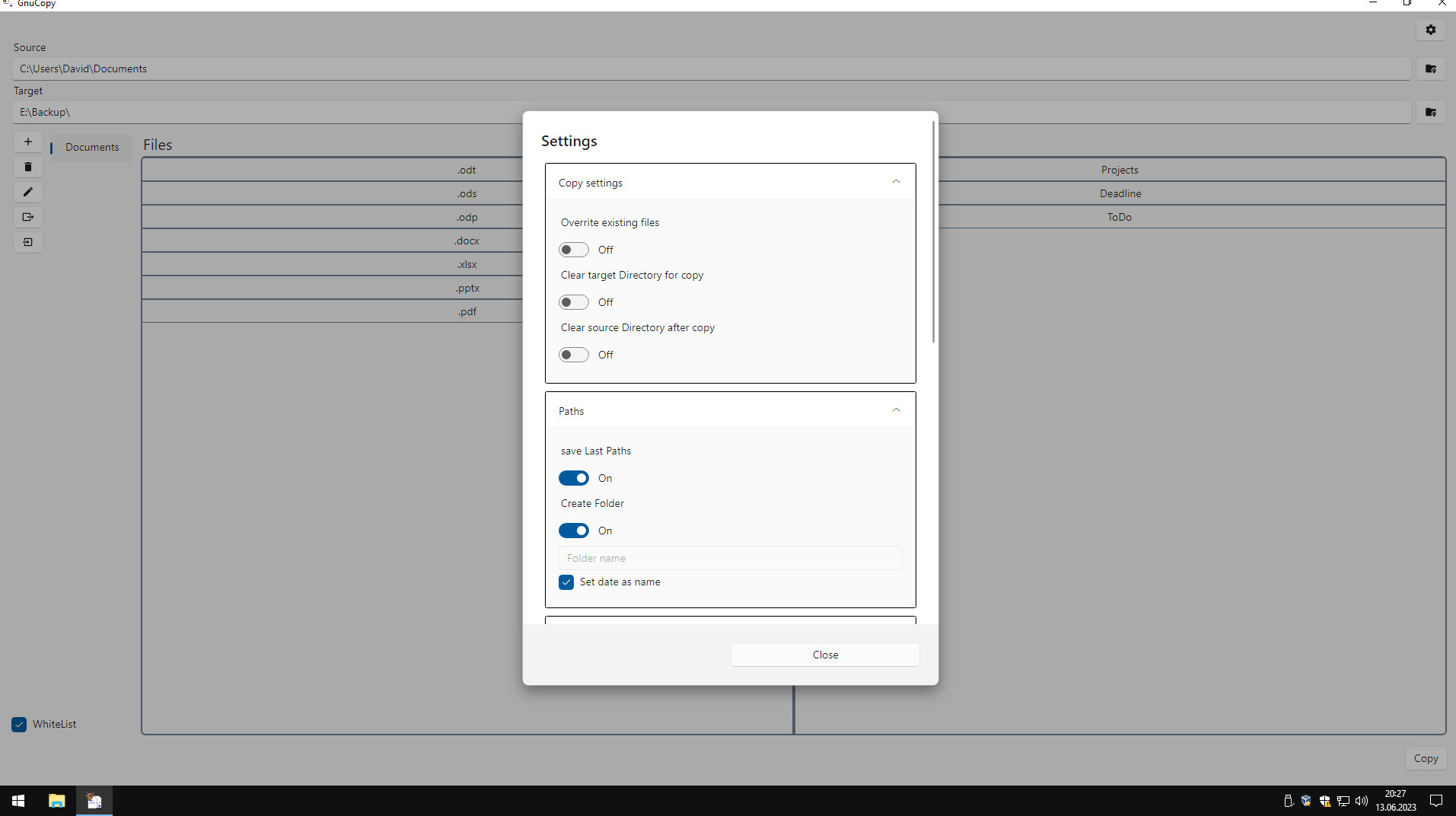 GnuCopy dokáže také vytvářet ZIP a TAR archivy, použít vlastní TempFolder, vyčistit cílové umístění před zahájením kopírování nebo exportovat a importovat předvolby. Program není potřeba instalovat.