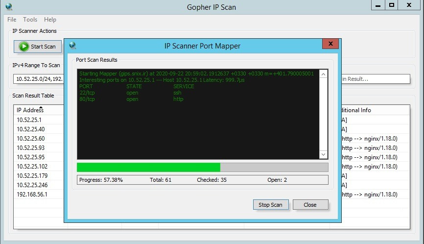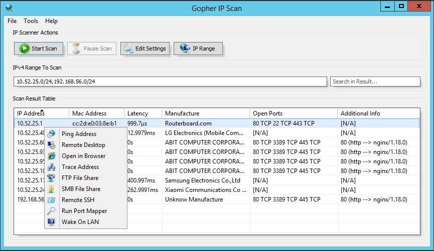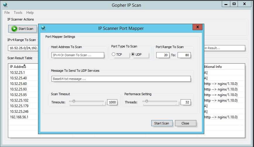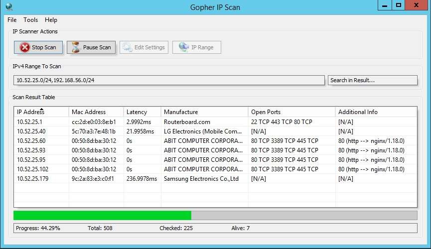 Gopher IP Scan je pomůcka pro skenování a zobrazení zařízení připojeních v lokální síti. Program dokáže na základě IP adresy rozpoznat živé hostitele, mapovat porty, skenovat v rámci zadaného rozsahu IP adres nebo procházet informace o jednotlivých připojených zařízeních (IP adresa, MAC adresa, latence, výrobce, otevřené porty a další). Nechybí ani možnost realizace příkazu "ping".