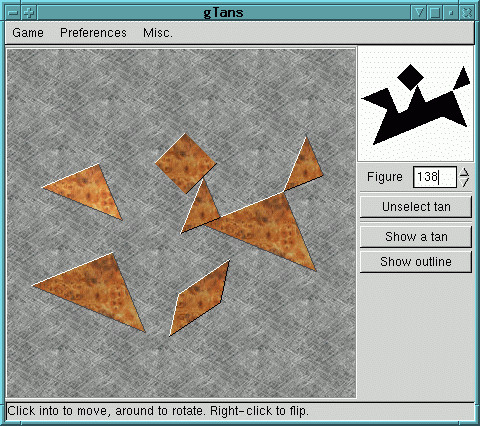 gTans je varianta klasické čínské skládačky Tangram. Cílem je složit sedm geometrických tvarů dohromady tak, aby vytvořily daný obrys. Všechny dílky musí být použity a jsou položeny vedle sebe. Dílky jsou pět trojúhelníků, čtverec a rovnoběžník.