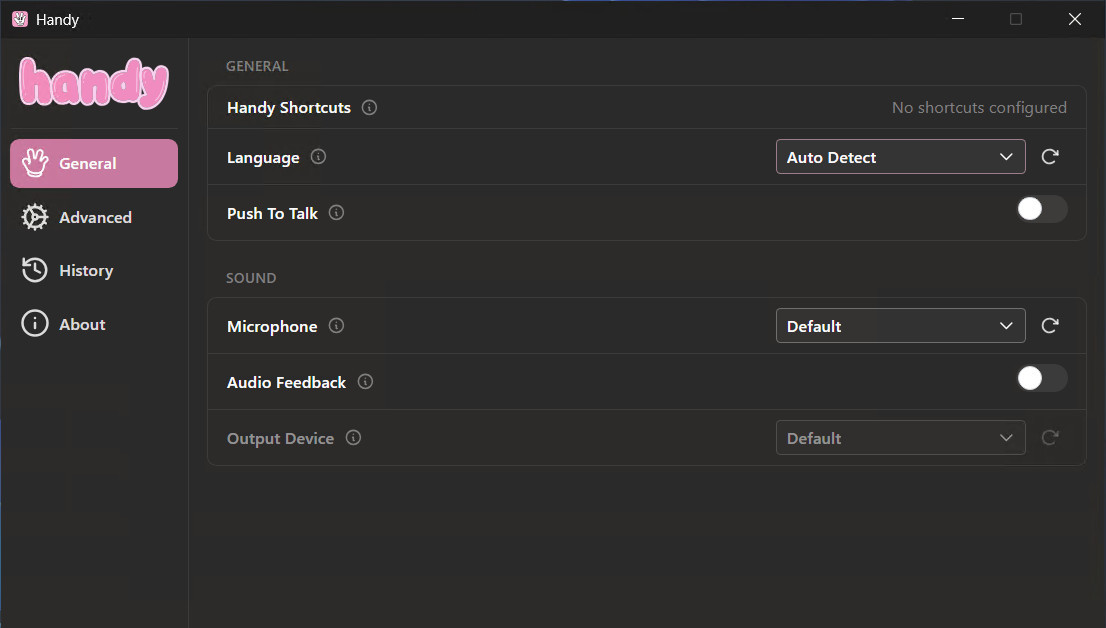 Handy je užitečná pomůcka sloužící pro konverzi mluveného slova na psaný text za využití umělé inteligence (AI). Text je vytvářen automaticky při diktování do mikrofonu. Text je pak automaticky vkládá do právě aktivní aplikace a podporováno je ovládání pomocí klávesových zkratek.
