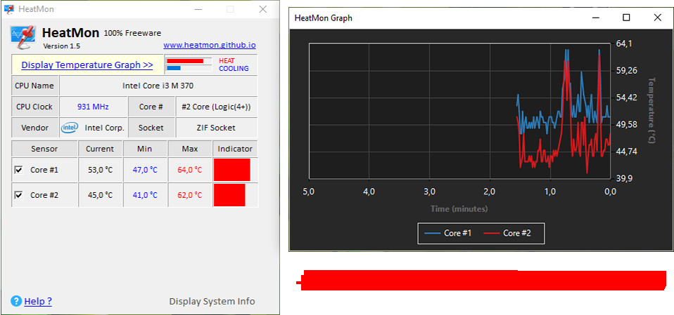 HeatMon je jednoduchý nástroj pro monitorování teploty procesoru (CPU). Program využívá vestavěných čipových senzorů (DTSS) a zobrazuje teplotu zvlášť pro každé jádro. Uživatel má navíc k dispozici i přehledný graf teplot. Pokud to základní deska podporuje, tak nástroj dokáže načíst i hodnoty senzorů v okolí CPU sockeru. Podporována je většina nejnovějších procesorů Intel i AMD.