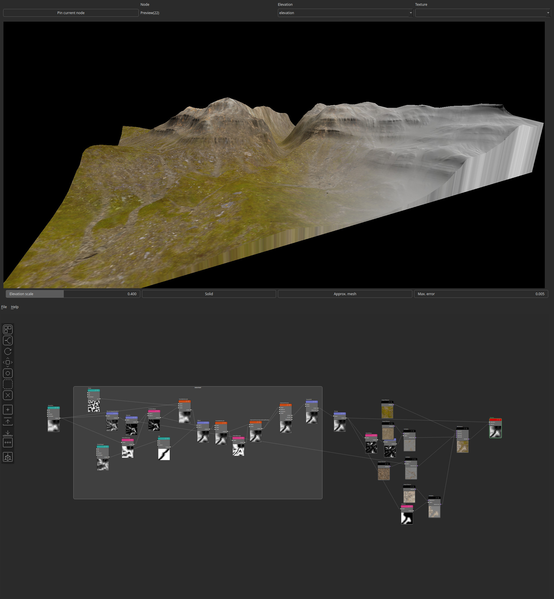 Hesiod je aplikace určená pro procedurální generování trojrozměrného terénu pomocí tzv. uzlového systému. Uživatel může vytvářet a upravovat terén prostřednictvím vizuálního rozhraní, ve kterém lze propojovat různé uzly reprezentující různé terénní prvky a operace. Program pak zajišťuje automatické vytváření komplexních terénů na základě uživatelem definovaných parametrů a pravidel.